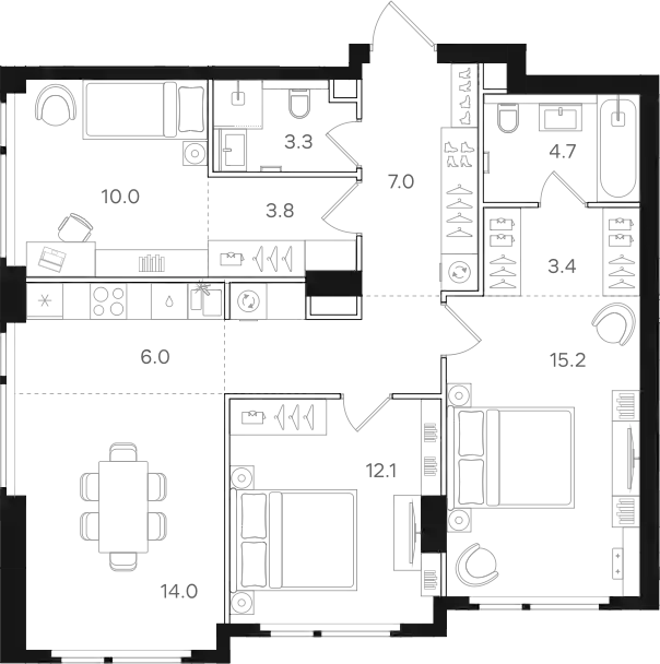 В жилом комплексе представлены планировки от студий до 4-комнатных квартир как классического типа, так и европланировки. Сдаются они без стен, высотой потолков от 2.95 до 3.25 метров и увеличенными окнами. Имеются квартиры с мастер-спальнями и террасами, с видами на Останкинскую телебашню, Измайловский парк и парк Сокольники.