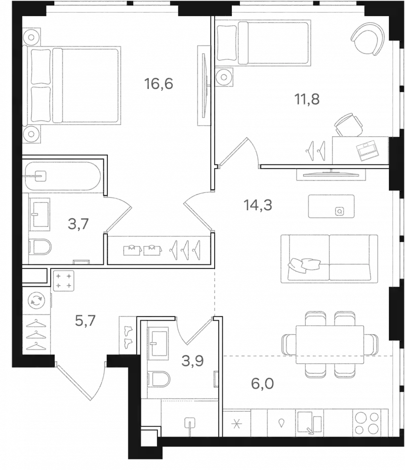 В жилом комплексе представлены планировки от студий до 4-комнатных квартир как классического типа, так и европланировки. Сдаются они без стен, высотой потолков от 2.95 до 3.25 метров и увеличенными окнами. Имеются квартиры с мастер-спальнями и террасами, с видами на Останкинскую телебашню, Измайловский парк и парк Сокольники.