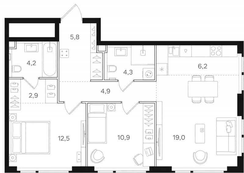 3-к.квартира, 70.7 м², 14 эт. в ЖК Мангазея в Богородском Корпус 2