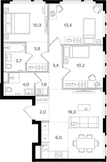 В жилом комплексе представлены планировки от студий до 4-комнатных квартир как классического типа, так и европланировки. Сдаются они без стен, высотой потолков от 2.95 до 3.25 метров и увеличенными окнами. Имеются квартиры с мастер-спальнями и террасами, с видами на Останкинскую телебашню, Измайловский парк и парк Сокольники.