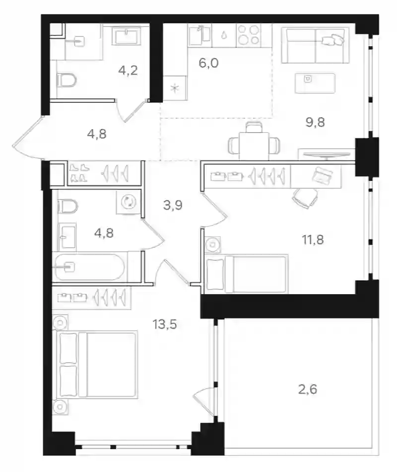 3-к.квартира, 58.8 м², 7 эт. в ЖК Мангазея в Богородском Корпус 5