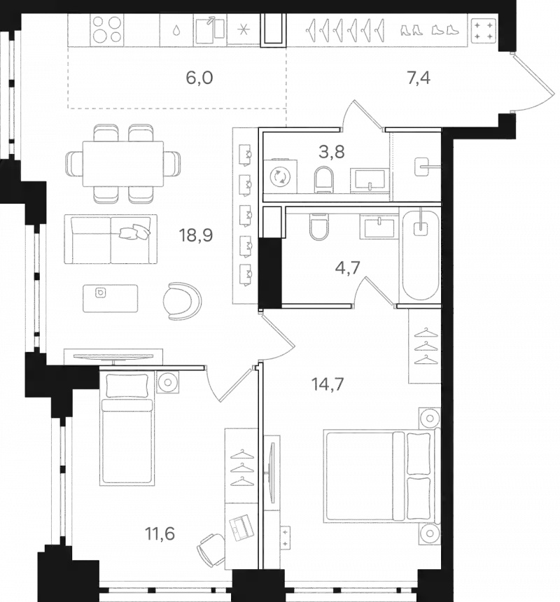 В жилом комплексе представлены планировки от студий до 4-комнатных квартир как классического типа, так и европланировки. Сдаются они без стен, высотой потолков от 2.95 до 3.25 метров и увеличенными окнами. Имеются квартиры с мастер-спальнями и террасами, с видами на Останкинскую телебашню, Измайловский парк и парк Сокольники.