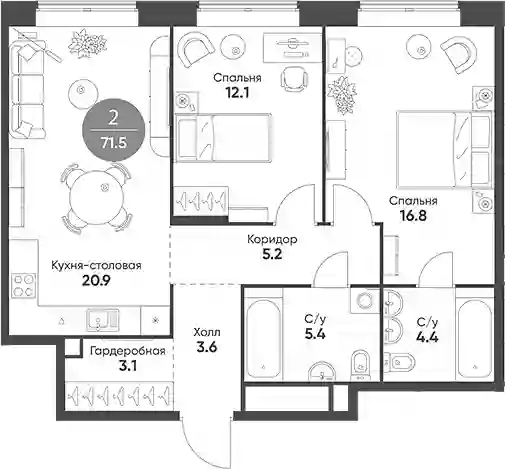 48 459 118 ₽3-к.квартира, 67.6 м², 20 эт.