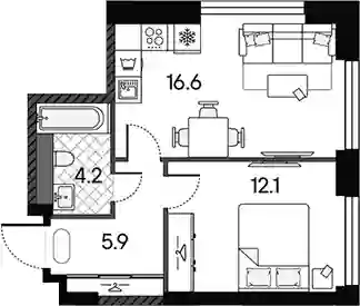 19 412 316 ₽2-к.квартира, 36 м², 26 эт.
