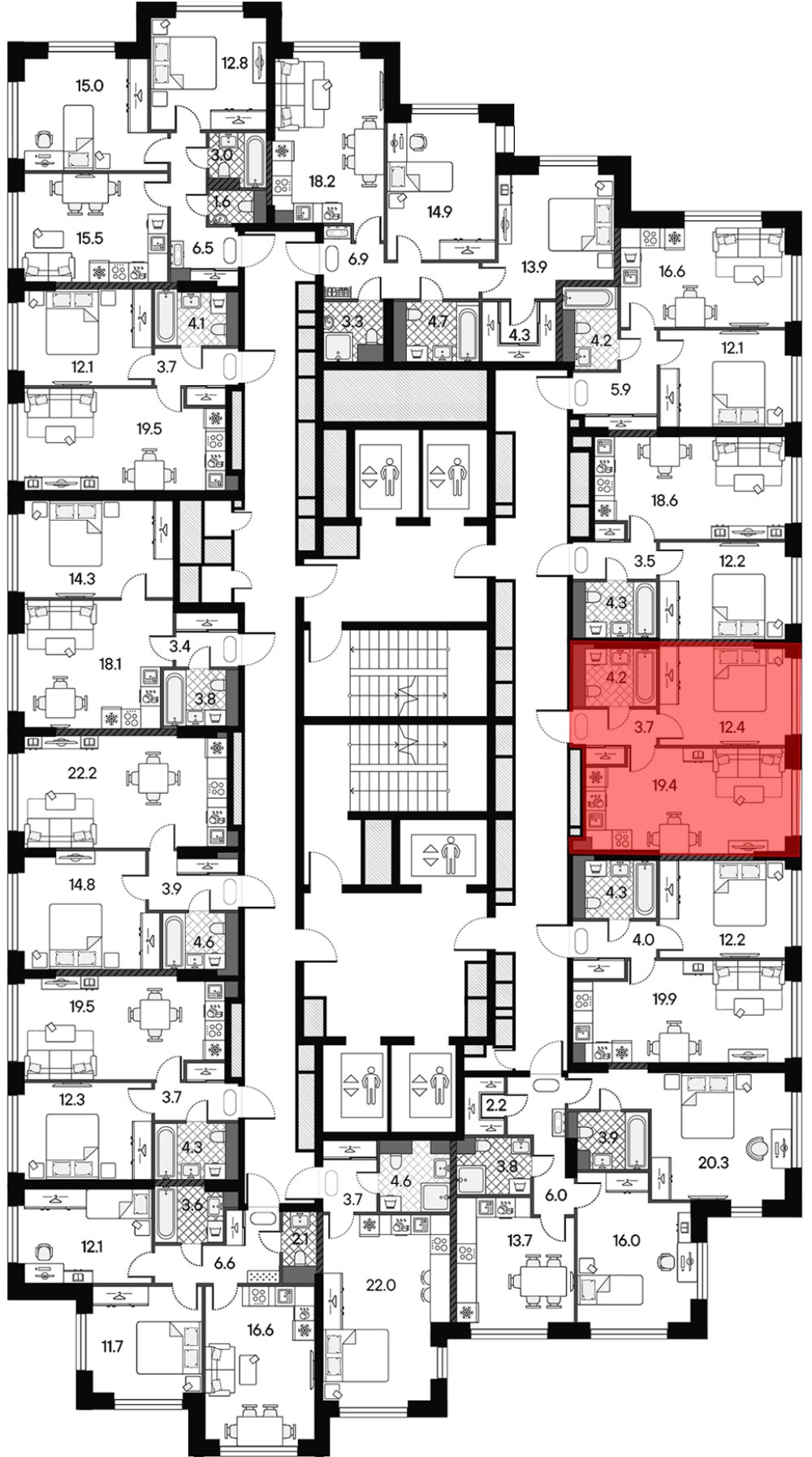 2-к.квартира, 39.7 м², 29 эт. в ЖК МАРК Корпус 1