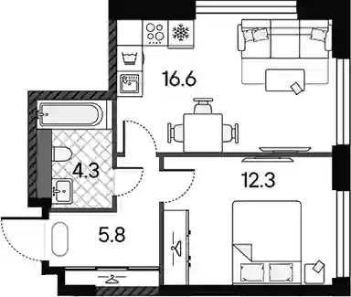 22 309 336 ₽2-к.квартира, 36.2 м², 42 эт.