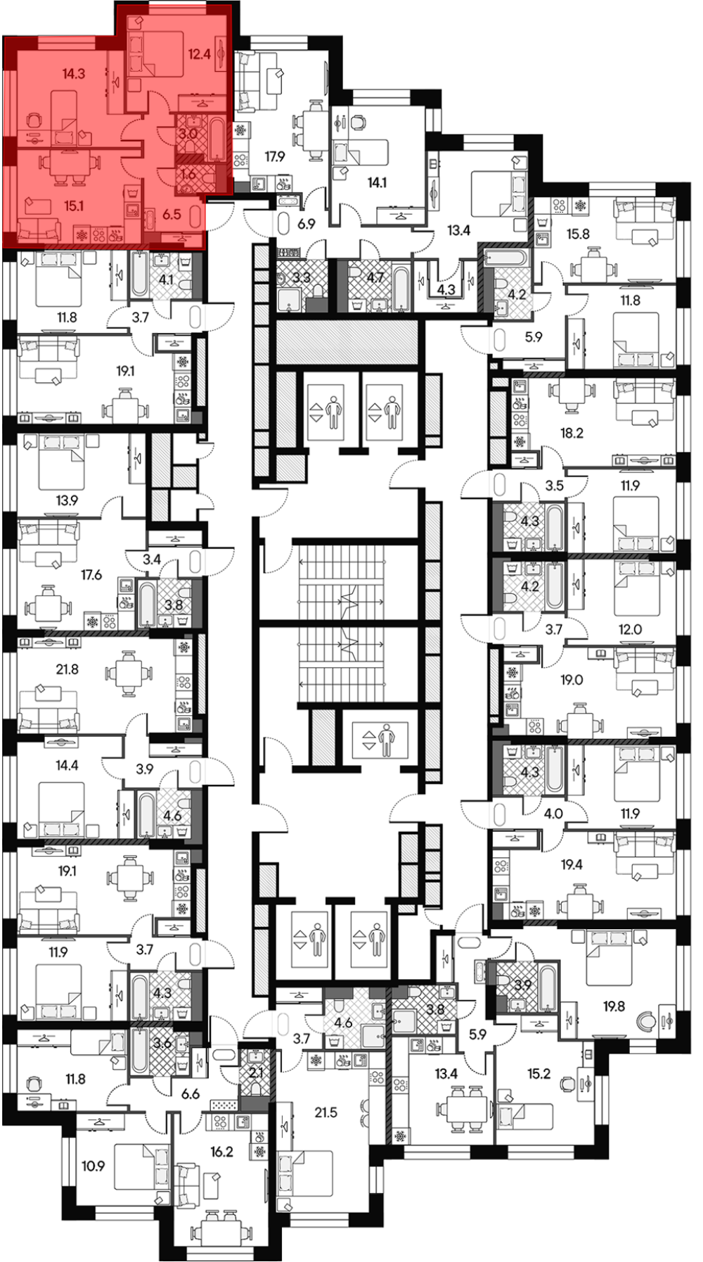 3-к.квартира, 54.4 м², 21 эт. в ЖК МАРК Корпус 1