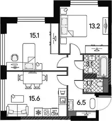31 956 144 ₽3-к.квартира, 58 м², 15 эт.