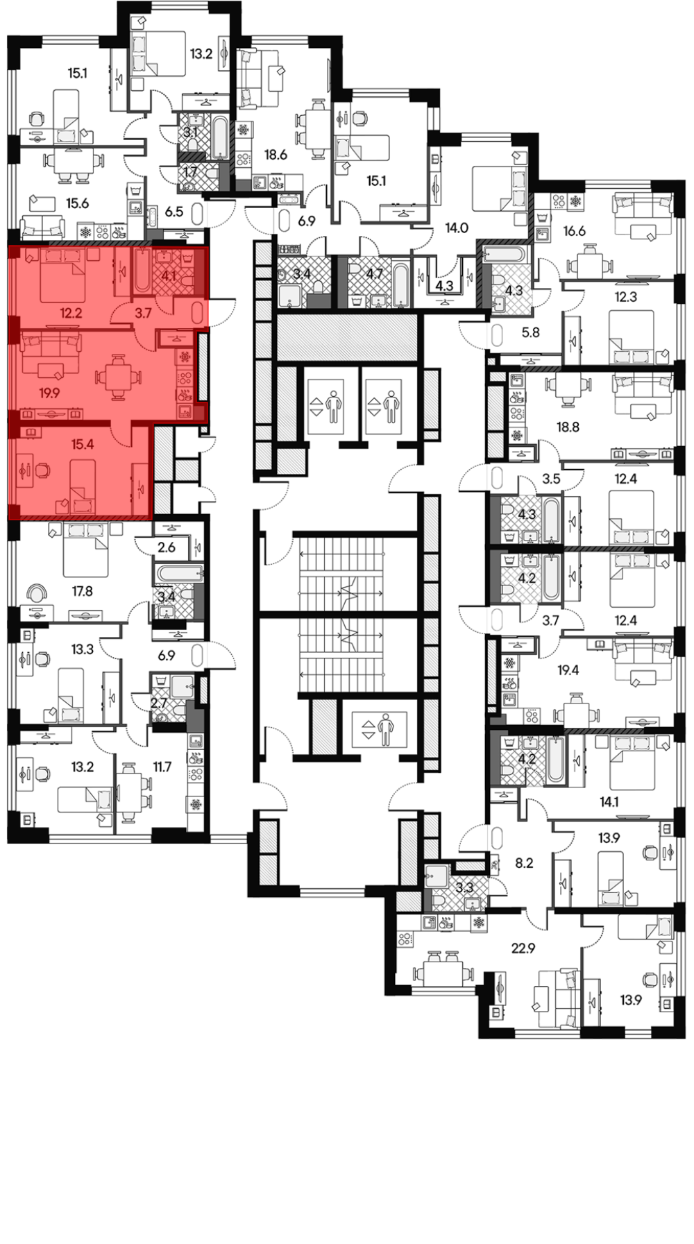 22 126 183 ₽2-к.квартира, 39.6 м², 22 эт.