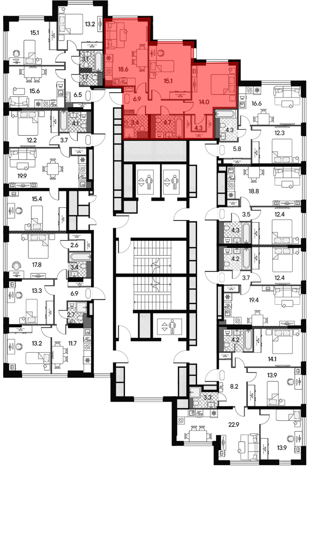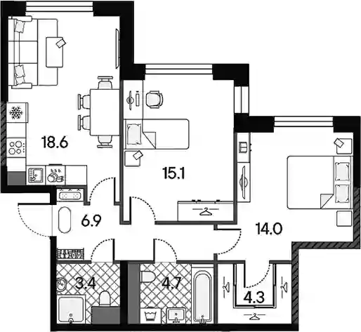 В жилом комплексе предложен широкий выбор планировочных решений: в наличии квартиры как классического типа, так и европланировки. Помимо классических форматов, в комплексе запроектированы квартиры с террасами и двухуровневые пентхаусы. Квартиры сдаются без отделки, высота потолков составляет 3 метра в квартирах и до 5,7 метра в пентхаусах. Все квартиры оснащены увеличенными окнами, в пентхаусах предусмотрено панорамное остекление. Из окон открываются виды на Москву-реку и Музей-заповедник Коломенское.