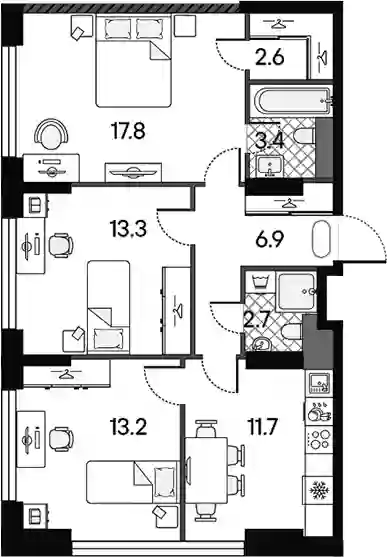 В комплексе «Дмитровское небо»предложено множество планировочных решений: в наличии квартиры, как классического типа, так и европланировки. Сдаются они без стен, высотой потолков 2,7 метра и увеличенными окнами.