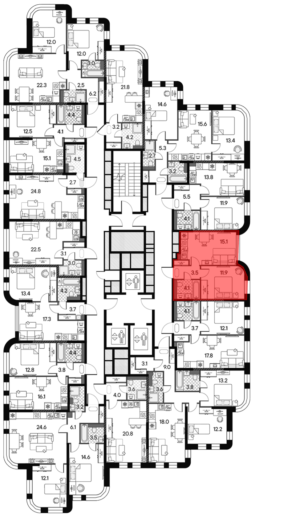 В жилом комплексе предложен широкий выбор планировочных решений: в наличии квартиры как классического типа, так и европланировки. Помимо классических форматов, в комплексе запроектированы квартиры с террасами и двухуровневые пентхаусы. Квартиры сдаются без отделки, высота потолков составляет 3 метра в квартирах и до 5,7 метра в пентхаусах. Все квартиры оснащены увеличенными окнами, в пентхаусах предусмотрено панорамное остекление. Из окон открываются виды на Москву-реку и Музей-заповедник Коломенское.