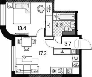 20 634 270 ₽2-к.квартира, 39.8 м², 13 эт.