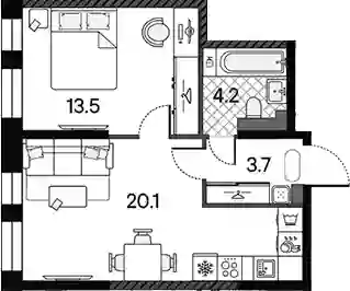 21 319 845 ₽2-к.квартира, 38.9 м², 4 эт.