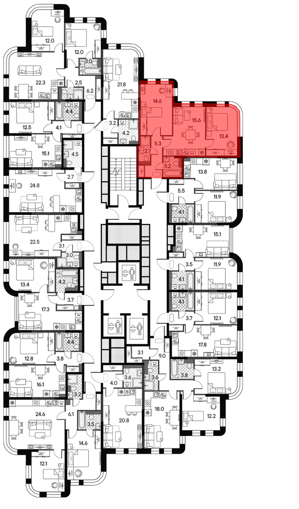 В жилом комплексе предложен широкий выбор планировочных решений: в наличии квартиры как классического типа, так и европланировки. Помимо классических форматов, в комплексе запроектированы квартиры с террасами и двухуровневые пентхаусы. Квартиры сдаются без отделки, высота потолков составляет 3 метра в квартирах и до 5,7 метра в пентхаусах. Все квартиры оснащены увеличенными окнами, в пентхаусах предусмотрено панорамное остекление. Из окон открываются виды на Москву-реку и Музей-заповедник Коломенское.