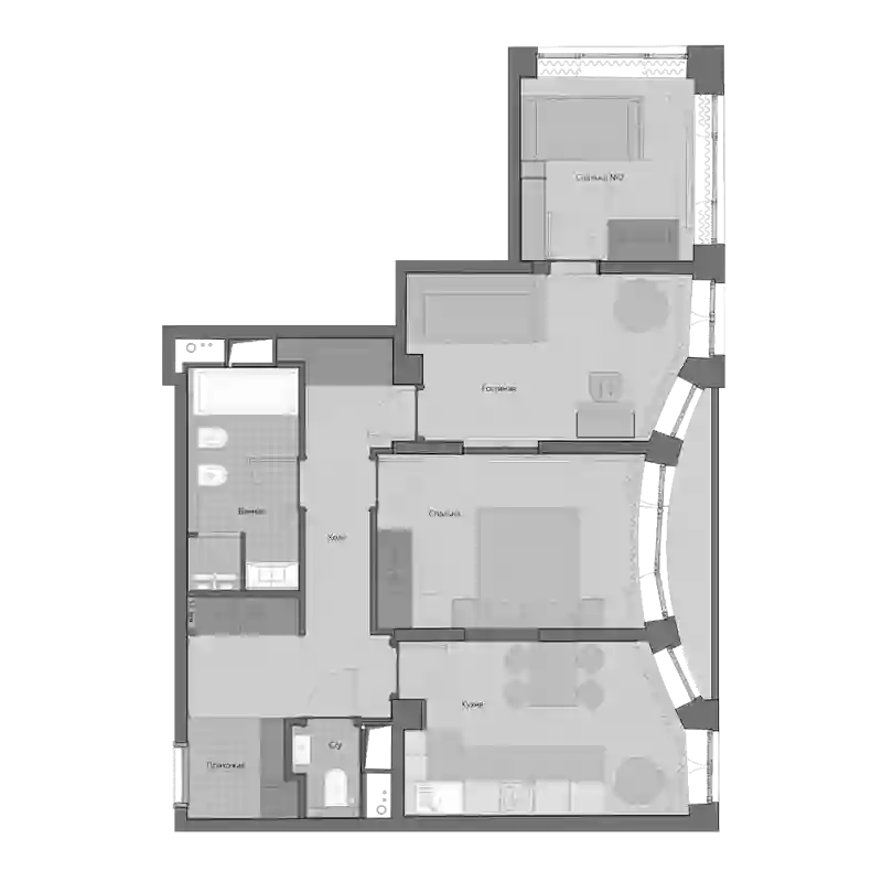 В проекте представлено множество планировочных решений — от студий до просторных 4х-комнатных квартир как классического, так и европейского формата, в том числе свободные и двухуровневые планировки. В наличии лоты как с чистовой отделкой, так и без отделки, высотой потолков до 3 метров и увеличенными окнами.