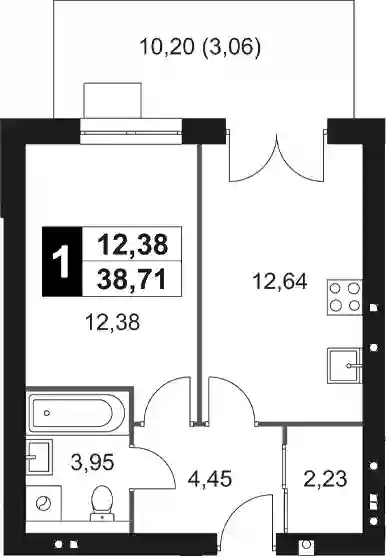 8 496 972 ₽1-к.квартира, 38.7 м², 2 эт.