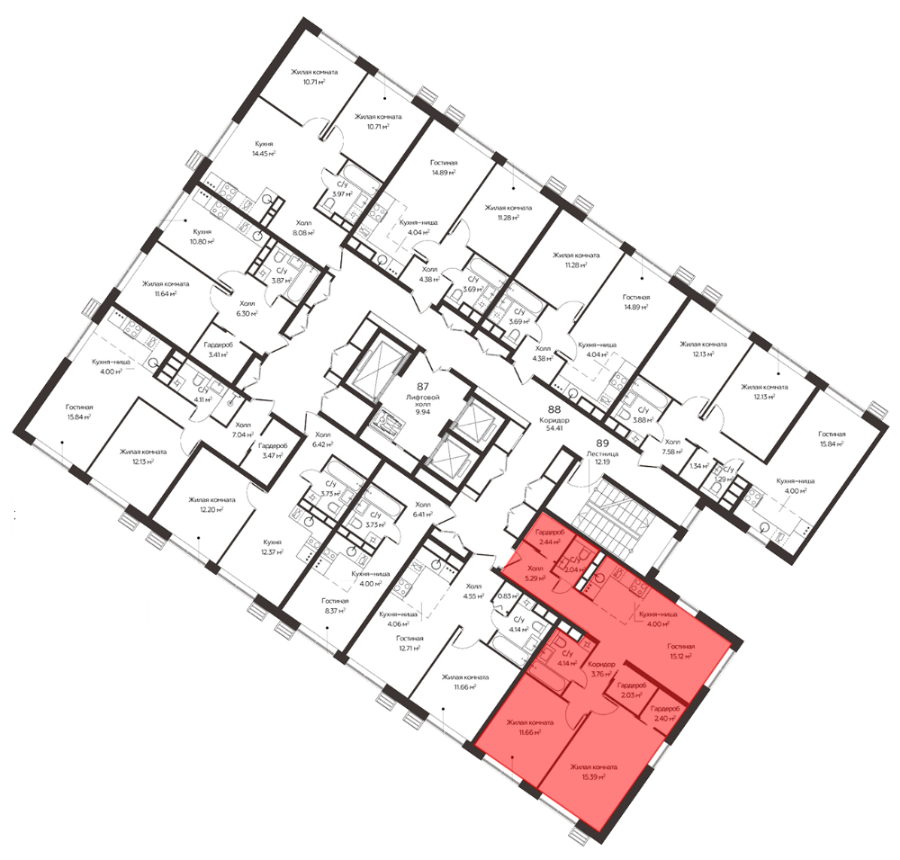 17 641 569 ₽3-к.квартира, 65.4 м², 15 эт.