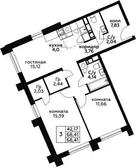 22 993 208 ₽3-к.квартира, 68.41 м², 18 эт.