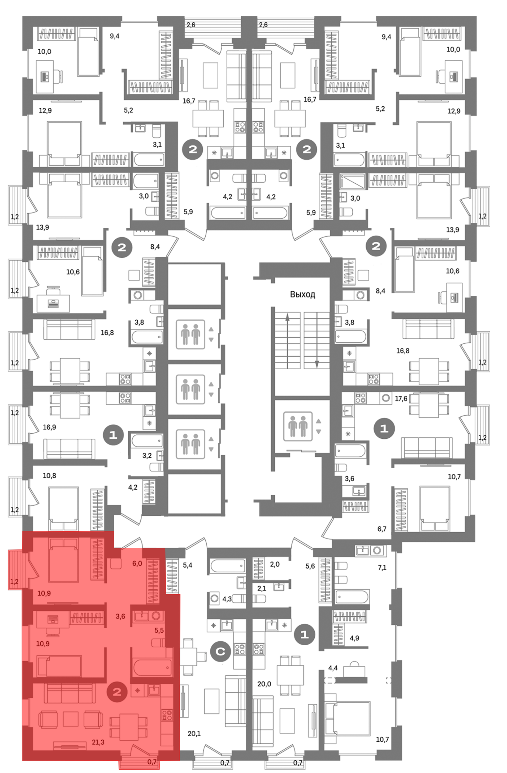 В проекте представлено множество планировочных решений — от студий до просторных 4-х комнатных квартир. Все лоты сдаются с подчистовой отделкой, высотой потолков до 2,7 метров и увеличенными окнами.