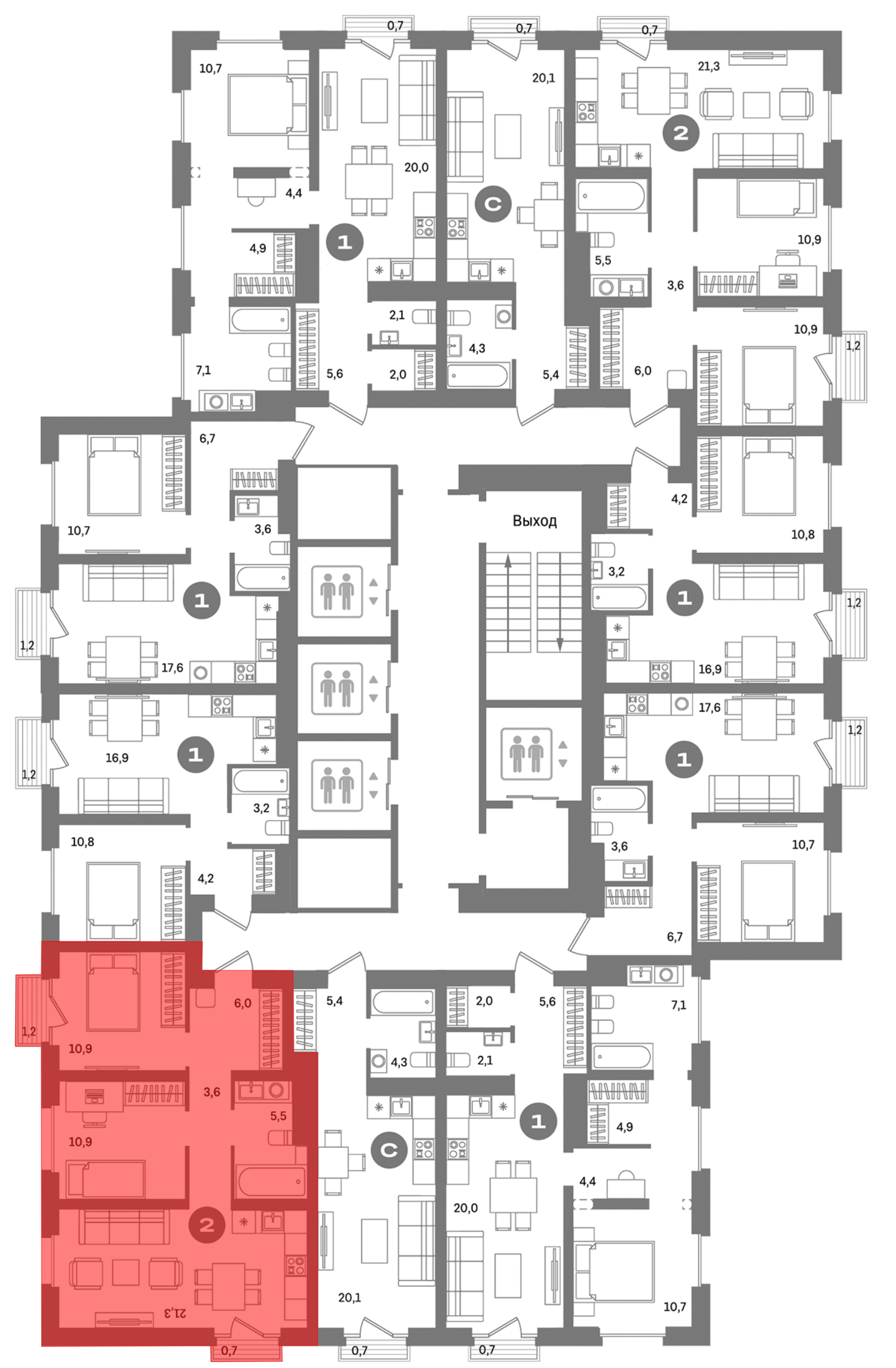 В проекте представлено множество планировочных решений — от студий до просторных 4-х комнатных квартир. Все лоты сдаются с подчистовой отделкой, высотой потолков до 2,7 метров и увеличенными окнами.