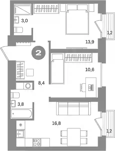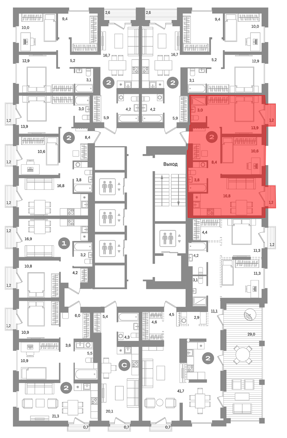 В проекте представлено множество планировочных решений — от студий до просторных 4-х комнатных квартир. Все лоты сдаются с подчистовой отделкой, высотой потолков до 2,7 метров и увеличенными окнами.