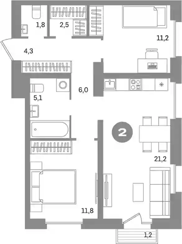 В проекте представлено множество планировочных решений — от студий до просторных 4-х комнатных квартир. Все лоты сдаются с подчистовой отделкой, высотой потолков до 2,7 метров и увеличенными окнами.