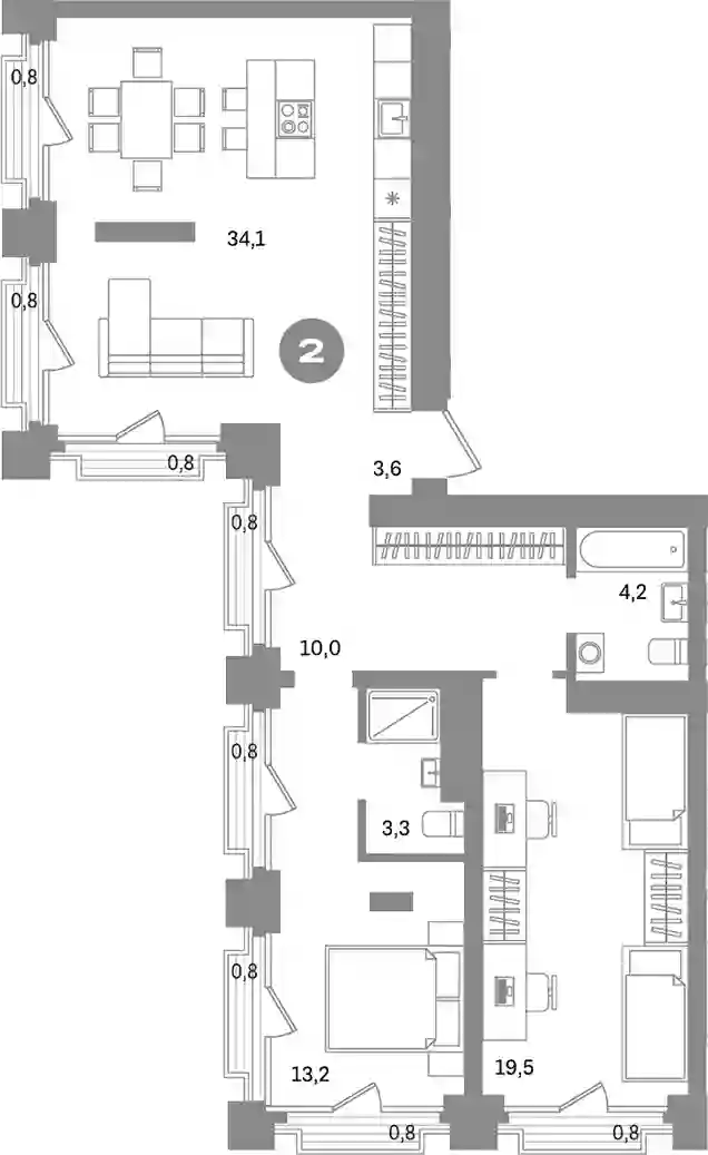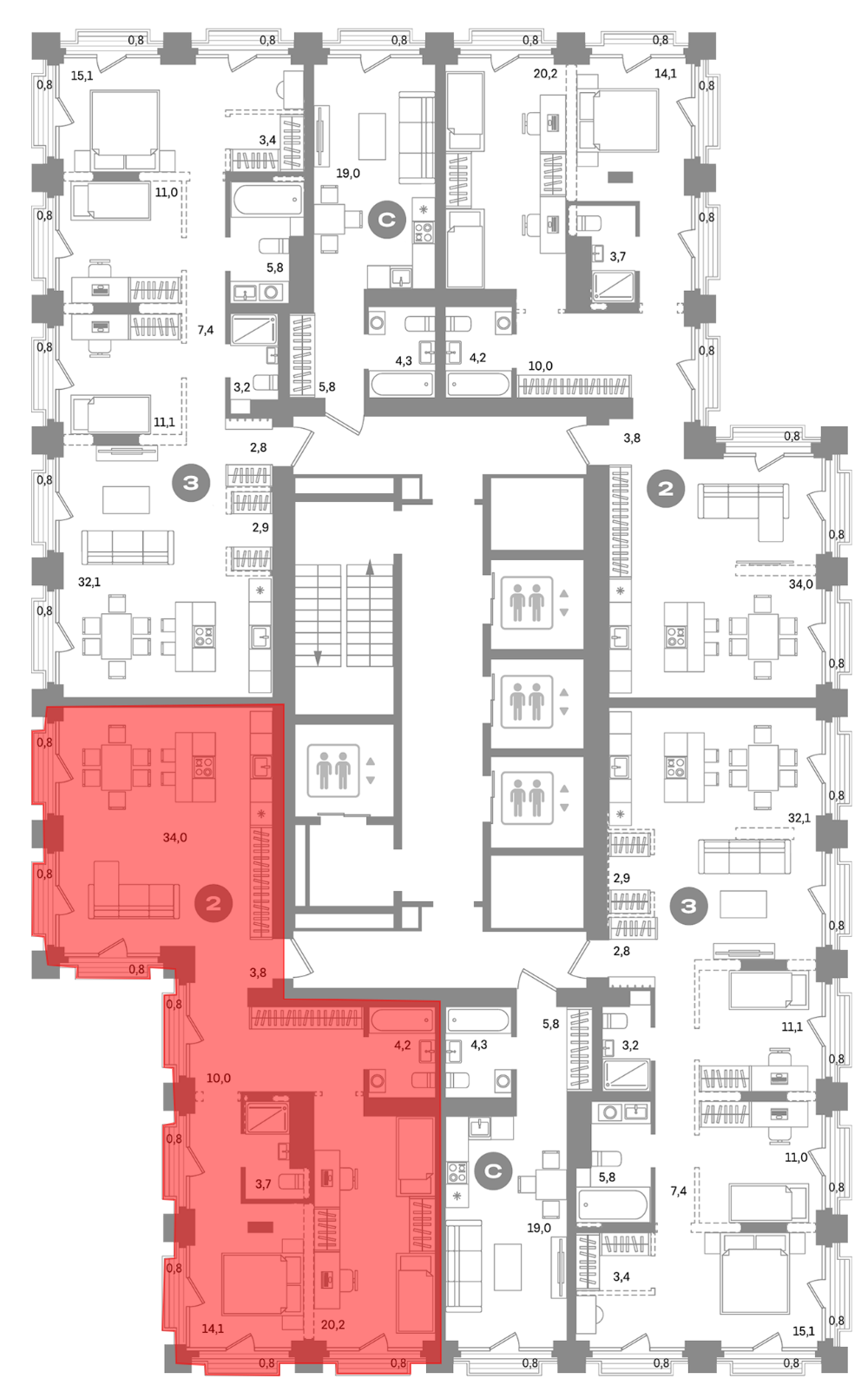 В проекте представлено множество планировочных решений — от студий до просторных 4-х комнатных квартир. Все лоты сдаются с подчистовой отделкой, высотой потолков до 2,7 метров и увеличенными окнами.
