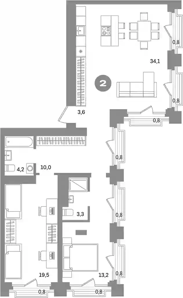 В проекте представлено множество планировочных решений — от студий до просторных 4-х комнатных квартир. Все лоты сдаются с подчистовой отделкой, высотой потолков до 2,7 метров и увеличенными окнами.