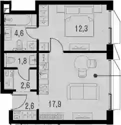19 407 460 ₽2-к.квартира, 43.43 м², 12 эт.