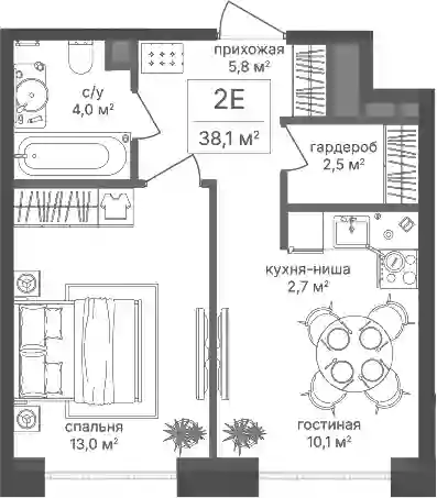 17 843 280 ₽2-к.квартира, 38 м², 3 эт.