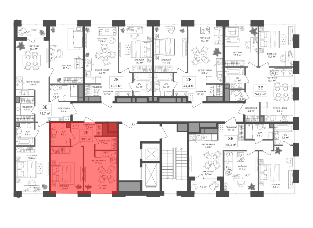 20 614 894 ₽2-к.квартира, 45.1 м², 18 эт.