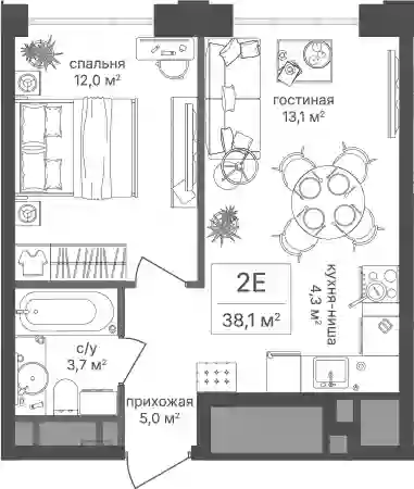 2-к.квартира, 38.1 м², 8 эт. в ЖК Михалковский Корпус 2