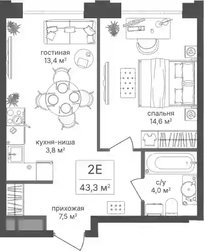 2-к.квартира, 43.3 м², 8 эт. в ЖК Михалковский Корпус 2