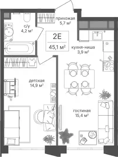 2-к.квартира, 44.1 м², 14 эт. в ЖК Михалковский Корпус 2