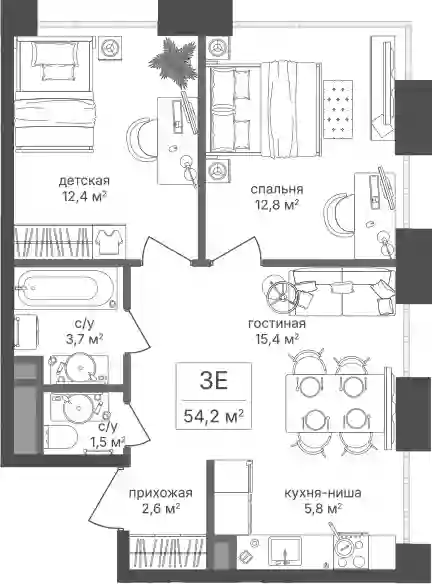 3-к.квартира, 54.2 м², 12 эт. в ЖК Михалковский Корпус 2
