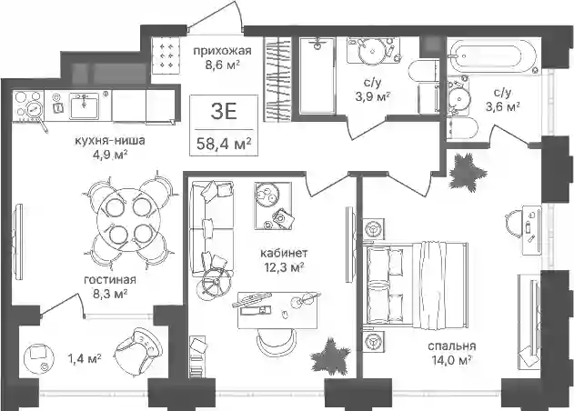 3-к.квартира, 55.6 м², 4 эт. в ЖК Михалковский Корпус 2