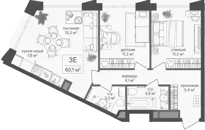 3-к.квартира, 60.1 м², 20 эт. в ЖК Михалковский Корпус 2