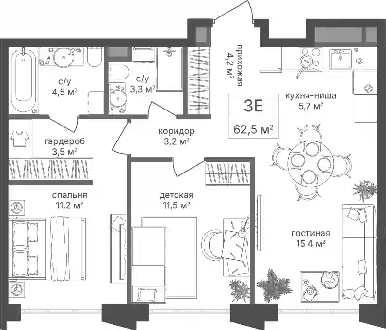 33 443 547 ₽3-к.квартира, 60.1 м², 20 эт.
