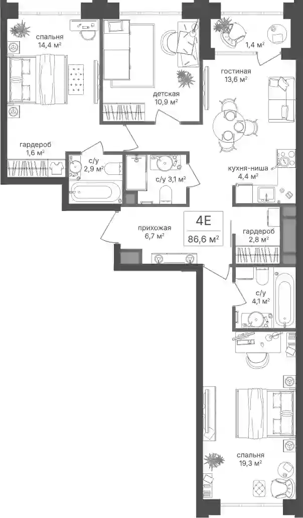 33 967 934 ₽4-к.квартира, 89.3 м², 6 эт.