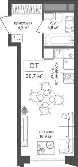 16 018 730 ₽Студия, 29 м², 4 эт.