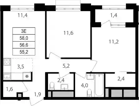 27 040 650 ₽3-к.квартира, 55.2 м², 12 эт.