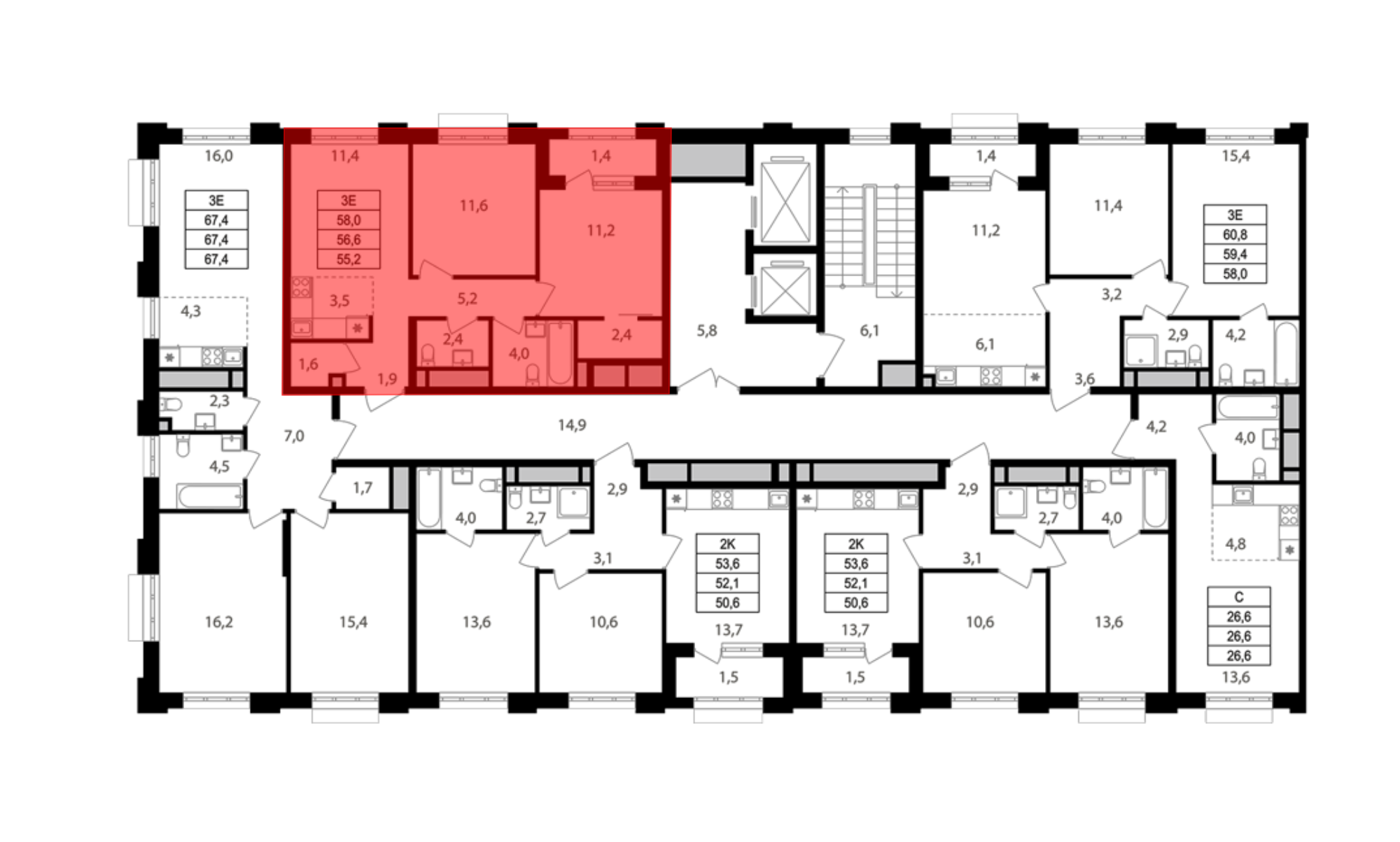 25 662 000 ₽3-к.квартира, 58.6 м², 8 эт.