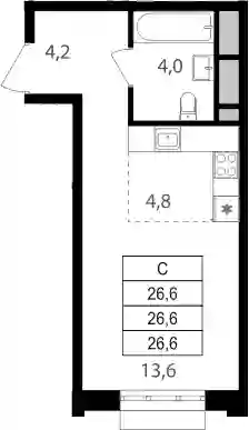 14 207 648 ₽Студия, 28.7 м², 13 эт.