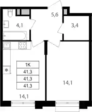 1-к.квартира, 41.3 м², 3 эт. в ЖК Михалковский Корпус 6