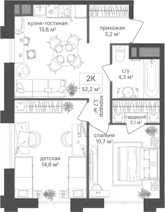 2-к.квартира, 52.2 м², 9 эт. в ЖК Михалковский Корпус 6