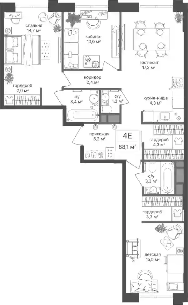 47 864 520 ₽4-к.квартира, 89.1 м², 4 эт.