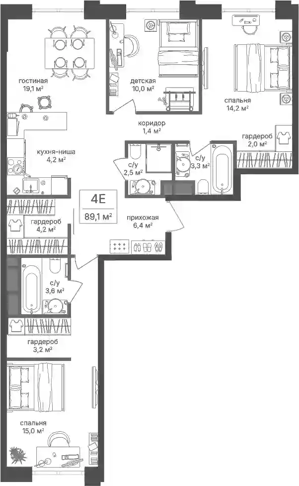 47 864 520 ₽4-к.квартира, 89.1 м², 4 эт.