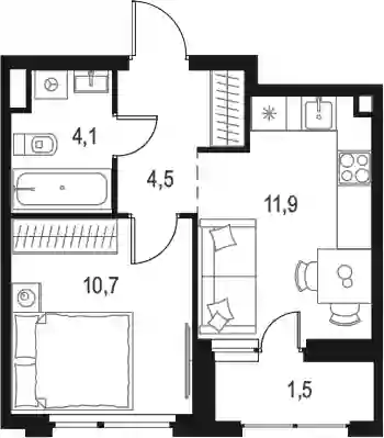 1-к.квартира, 31.2 м², 2 эт. в ЖК Микрогород «В лесу» Корпус 26/1