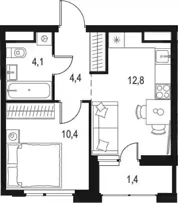 1-к.квартира, 31.7 м², 14 эт. в ЖК Микрогород «В лесу» Корпус 26/1